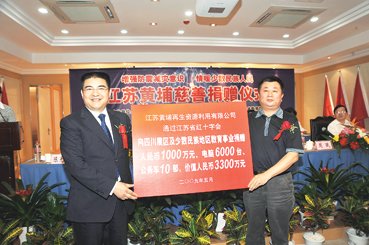 陈光标(左)和江苏省红十字会党组书记、副会长单家海在捐赠仪式现场