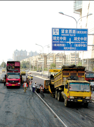 昨日,随着望京外环路(北段)市政道路工程最后一车沥青混凝土摊铺完毕,望京小区市政路网最后一个联络线出口正式竣工,这标志着望京小区连接京顺、京承、北四环、北五环的本市最大小区市政路网全部建成。记者从负责施工的北京市政路桥控股市政集团二公司获悉,望京外环路(北段)市政道路工程,北起望京湖光中街,南至望京南湖渠路,全长856米,双向六车道,是朝阳区政府为群众办实事的重点项目。商报记者 陈伟/文并摄
