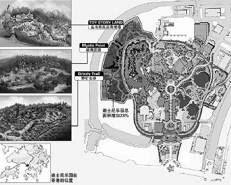 计划新增三个主题区分别为“野矿山谷”、“迷离庄园”和“反斗奇兵历奇地带”,前两个主题区是全球独有,第三个是亚洲独有。