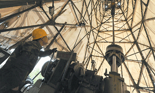 7月1日中午,勘探项目负责人李尔峰工程师正和几个工程师在里屋的大炕上休息。一位姓胡的工程师告诉记者,他们的勘探计划时间很紧,任务很重,自从2006年实施钻井计划以来,大部分时间都驻守在这个山村里,很少有时间回家。