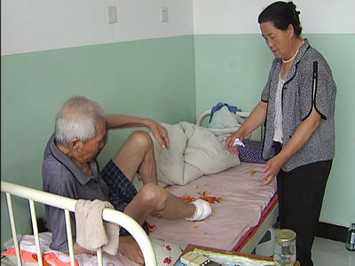 患大动脉阻塞一年的周福良老人,他的右脚因病不得不截肢。尽管他只交了3000块钱的押金在卫生院,但他和他的老伴在卫生院已经住院快一个月了。由于现在新农合的报销比例提高了,他起码少花了三四千块钱。