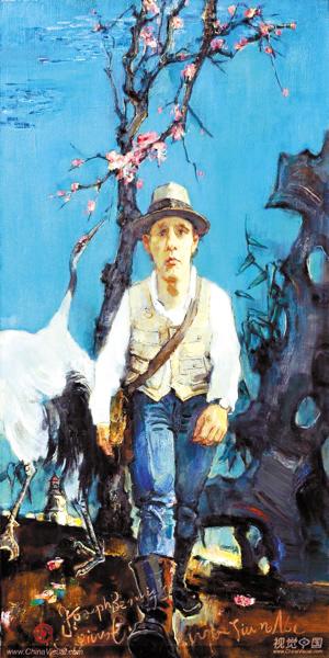 前些天本报做了题为《圆启·中国》当代艺术价值回归展,旨为让艺术回归大众,用东方的价值观和视觉影响我们当下,热闹了一阵煽忽了一阵,应者寥寥,灯下一翻袁文彬的画册,《鹤与博伊斯》、《竹和博伊斯》突然变得很生动起来,博伊斯这位20世纪最伟大的艺术家,欧洲前卫艺术的领袖,一生高呼“人人都是艺术家”口号,致力于艺术回归大众的美好理想的德国人正在袁文彬给他营造的东方氛围里严肃地走着看着的,我在想博伊斯如果还活着,看见袁文彬的画,看见当下艺术家们潜心揣摩折腾自己的状态会是什么样的表情。