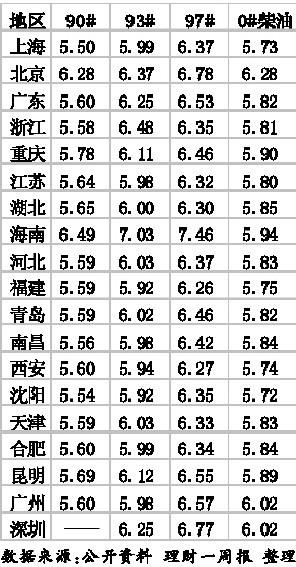 目前各地调价后汽柴油最高零售限价(单位:元)