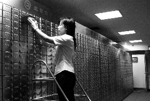 银行工作人员正在检查保险箱。本报记者 苏曼丽 摄