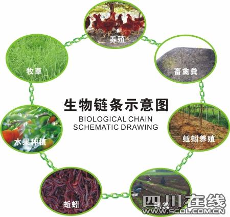 最开始,这里本是一个种植澳洲柚子树的果园,果园需要除草,如果采用除草剂会造成污染,靠人工拔费神又费钱。“正好可以养鸡解决这个问题”,基地负责人冉先生说,不用花什么力气,敞放的鸡就会把杂草吃光光。随之而来另外一个问题,那就是鸡粪,处理不好也会造成环境污染。但对蚯蚓来说,鸡粪可是美味。