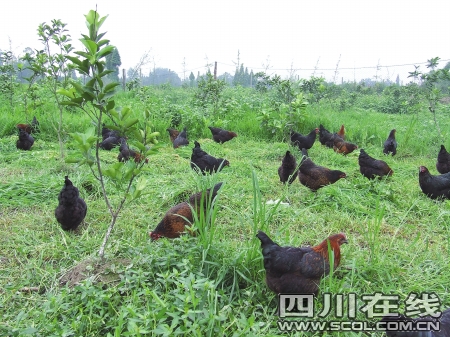 这样的循环经济链,可以产出“虫草”鸡蛋、“虫草”鸡、苹果柚、无污染蔬菜四种产品,产量最大的是鸡蛋。