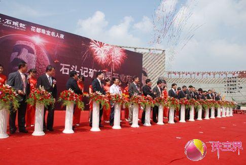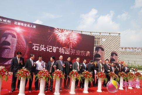 [中国黄金资讯网讯] 2009年8月15日,“石头记矿物园”历经三年缜密策划,两年辛苦营建,终于在千呼万唤中揭开神秘的面纱,全球公开亮相。此次仪式的主题为“印象•石头记”,台湾著名歌星费玉清作为石头记的品牌代言人出席了矿物园的开业仪式,此外广州市领导、花都区领导、花都珠宝商会领导、新华街道办领导、石头记全国经销商代表以及大陆、港澳台各界朋友,群贤毕至,共同见证石头记矿物园隆重亮相的历史时刻。众嘉宾在开业典礼上留影纪念远道而来的石头记形象代言人费玉清为矿物园的开业表示祝贺仪式上,花都区区长林中坚为矿物园的开业致辞,对于石头记的发展成就和矿物园的开业表示祝贺。作为石头记的领头羊,董事长苏木卿则表现出了他博大的胸怀和爱心,在此次仪式上向新华街捐赠了50万元的教育基金。形象代言人费玉清和苏木卿董事长为矿物园的开业按下“同心手印”之后进行了传统的剪彩和醒狮点睛仪式,当苏木卿董事长从生龙活虎的狮子口中接过象征“生财”的生菜时,全场为石头记的盛典喝彩,为石头记今后的发展增加了信心。众嘉宾为石头记矿物园的开业剪彩醒狮点睛苏木卿董事长接住狮子口中的生菜