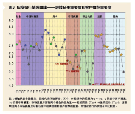 但是,在对客户不十分重要的地方,比如与积分有关的体验接触点、促销礼品的吸引性等方面,招行投放的资源最少。