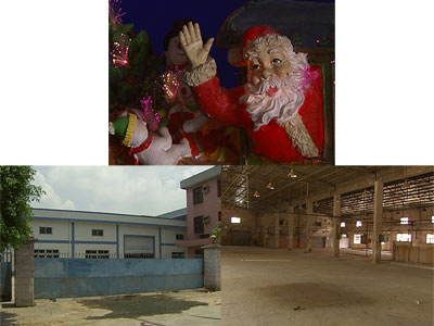 图片01:每年的7、8月份都是圣诞礼品生产和出口最忙碌的时候,而在深圳市宝安区松岗镇记者却看到,一家松岗镇最早的圣诞礼品工厂却大门紧闭,由于今年是订单少了多少,工厂厂房不得不闲置下来,还有大量的厂房已经出租出去。
