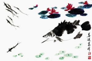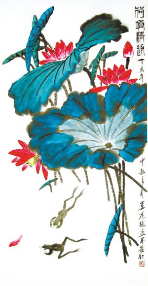 师古人,师造化,这是艺术承传和发展不可偏废的两个方面。齐白石先生说,见古今之长,摹而肖之能不夸,师法有所短,舍之而不诽,然后再现天地之造化,如此腕底自有鬼神。述德的艺术,即遵从这个路子走的。他通过认真的临摹,掌握了先师和乃父的艺术精髓,奠定了个人的艺术风貌。他创造的《芙蓉有鱼图》、《壮志凌云》、《大寿》、《荷花》等厚重拙雅,盎然大气,艳而不俗、雅而隐秀。其运笔构创,深得齐派艺术风韵。常言说,对于传统,要能够打进去,又能打出来 。艺术是修养、功力、神思、巧构诸方面的综合体现,能够全面领会并变成自己得心应手的本事,谈何容易。但你必须先做到心领神会,化为自己的血肉,从而自然而又自如地发挥,方能称得上学而有成。这就要靠积年累月的学习锻炼,不断反复,由生到熟,从面貌到精神,从笔墨到气象,臻于完美。