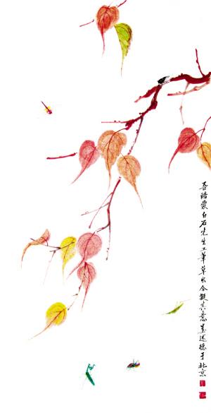 他的绘画同样值得称许。简而言之可谓:“笔墨来自家学,善于绍述先德,注入科学意识,谋求继承中发展。”他主要画花鸟,而工虫写卉的对比,妙在似与不似之间的图式,带有书法篆刻意识的笔墨功夫,都表明他传承齐派艺术上的深厚功力。至于翎毛的形神兼至、草虫的刻画入微,显然得益于科学的态度。以科学意识进一步在观察写生上发展齐派和家学,体现了他的探索方向。