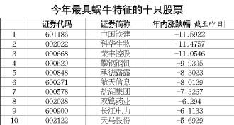 解析今年以来十大蜗牛股:中铁建年内涨幅-11%