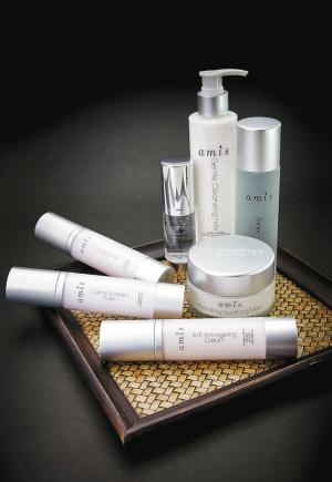 amis天然护肤品涵盖面部系列、身体SPA系列、排毒洗护系列、纤体系列、健康食品系列。amis所有的产品都坚持由100%草本植物精华萃取提炼而成,并采用泰国六星级水疗中心御用的厂家研发和制作,打开包装就会闻到一股来自大自然植物的清香。产品自2007年通过amis在香港“金巴利道”开设的美肌纤体水疗中心成功运用,已让超过5000名会员深深感受到来自amis的天然的护理服务。