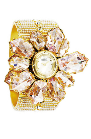 腕表作为男人腕饰永恒的主题,在本届珠宝展上,被很多有创意的展商进行了充分的表达。它们用别致的表链外观和表盘上繁复的工艺,强化着腕表作为男性首席饰品的地位。在设计中,很多采用了颠覆传统的镶嵌,以及各式各样的装饰形态,将腕表注入时代的信息。这些腕表已经被打破传统“表”的特征,它们已不再是一块纯粹的表,在其中流露出更多的文化艺术和个性化气息。