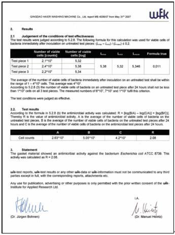 此外,新型蓝色的AMT抗菌除霉窗垫,经WFK(德国著名衣物护理所)试验和中国科学院理化技术研究所测定:抗菌率>99%,达到0级标准(最高等级)。在长期使用过程中,相比容易滋生细菌的普通窗垫能有效抑制霉菌滋生,避免内筒对衣物的交叉感染,呵护全家家人的健康。