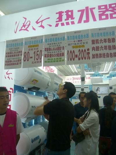 记者在各卖场看到,海尔热水器推出的23款各有特色的电热水器,也将兼具科技化、智能化和人性时尚的理念演绎到了一个全新境界。据悉,这次海尔上市的6大系列热水器,无论从安全、节能、人性化设计方面,都给了业界强烈的震撼。