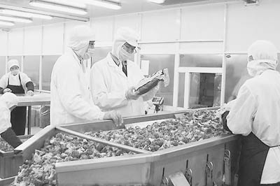 近日,美国宣布了美国农业法案要求的强制性原产国标签最终法规,涉及特色农产品速冻果蔬。根据该法规规定,列明在该法规内的产品提供给零售商的任何人,须向零售商提供产品的原产地信息。零售商可通过在上述产品上使用标签,或销售时在其包装上或容器上使用标签,或印章等手段将这些信息转达给消费者。为帮扶余姚出口速冻蔬菜企业及早应对该法规,余姚检验检疫局在及时向企业人员进行现场宣传贯彻,在产品检验时对报检批进行零售包装核查。图为余姚局检验检疫人员在企业现场核查零售包装的出口产品标签。高海元 摄