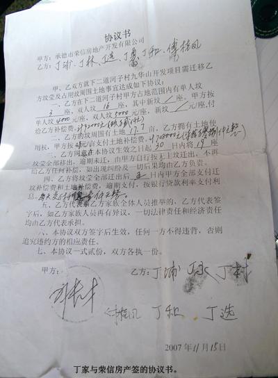 王秀珍的遭遇,在二道河子村还不是最冤的,同类的事例还有很多。比如,搬迁丁家的祖坟所引起的经济纠纷中,村民丁和甚至已经入狱。