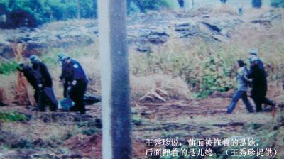 “我们上前理论了几句,就有几个大盖帽把我儿媳妇抓了起来,还带上了手铐。”王秀珍说,看到儿媳妇被铐起来,她急忙上前试图“营救”,结果反而坏了事:“那两个人就走过来朝我身上踢……接着就把我拖走了,拖到不远处一个坎,就把我扔那儿了,后来我就昏过去了,什么都不知道了。”