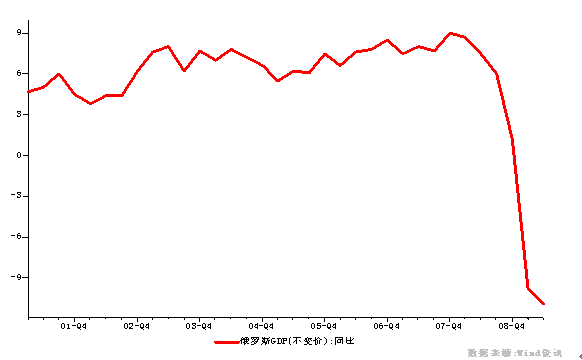注: 数据截至2009年第二季度,第三季度俄罗斯实现环比增长