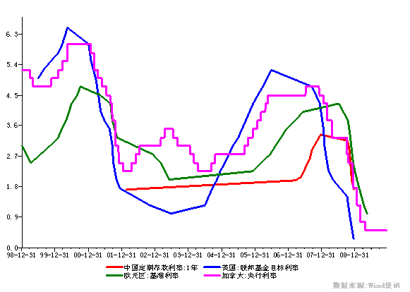 当西方主要经济体均在复苏的时候,英国经济今年第三季度仍然未摆脱负增长(如图二所示),它是我们考察的九个经济体中经济仍在下滑的唯一一个。此外,迪拜主权债务违约中,我们考察的经济体中英国的银行业受到的直接损失是最严重的。故英国央行11月5日决定将短期利率继续维持在0.5%的历史最低水平不变,同时决定扩大其直接向市场提供货币供应的所谓“定量宽松”货币政策的注资总规模,从此前的1750亿英镑增加至2000亿英镑。