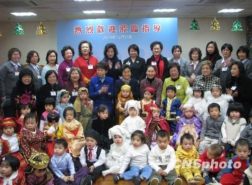 国家主席胡锦涛的夫人刘永清与澳门母亲会托儿所幼童们合影留念。中新社发 于晶波 摄
