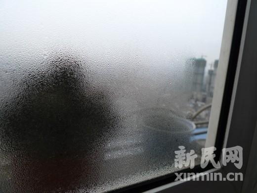 今日温度跌至1℃,窗户上因室内外温差过大导致有雾气。新民网记者 袁蓉 摄