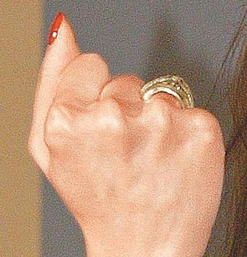 右手无名指秀出疑似订婚男方送的3克拉鑽戒。