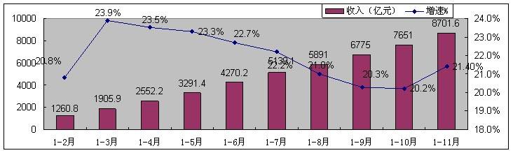 图3 2009年1-11月软件产业收入增长情况