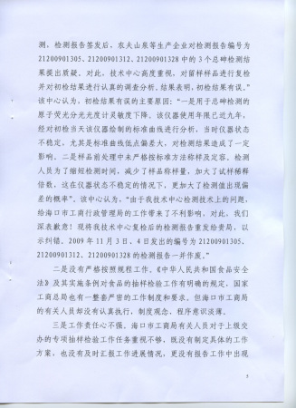2009年12月02日:农夫山泉声明:不认同海口工商的复检结果