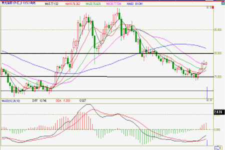 7月15日下破80美元持续的支持,7月31下破前期低点,75美元附近有望再得支持。
