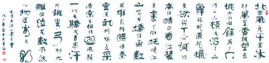 他追求书法艺术,立足当代,上溯秦汉,涉猎魏晋,深得当代著名书法家、首任中国书协主席舒同之笔意,形成了自己的风格。他能把自身处世智慧寓于其中,见字如见人,和蔼可亲。他把小字当做大字来写,一丝不苟;他把大字当做小字来写,游刃有余。为了写好行书作品毛泽东《沁园春·雪》,他不知耗费了多少个清晨和夜晚的时间,这块木炭燃烧了又燃烧,倾注了自己全部的心血和汗水。