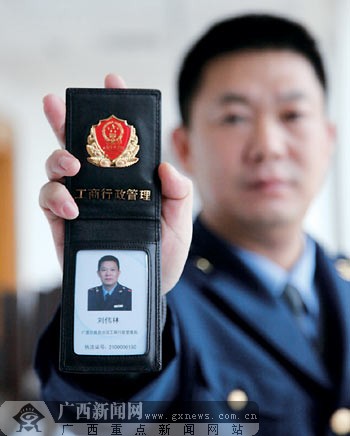 广西新闻网南宁讯(记者刘琼)1月15日,自治区工商局举行换发新版执法证新闻发布会暨宣誓仪式。记者从新闻发布会上了解到,广西共有9140名工商执法人员领取新版执法证,新版执法证将于2月1日正式启用。