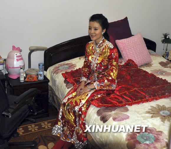 1月25日,新娘车晓端坐在新房里。新华社发(薛俊 摄)