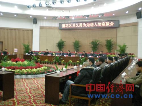 中国经济网长沙1月28日讯(记者刘麟、通讯员段萍) 元月28日上午,由湖南省长沙市雨花区精神文明建设指导委员会、长沙市雨花区社会治安综合治理委员会组织筹备的“长沙市雨花区见义勇为先进人物座谈会”在雨花区会议中心举行。这次会议邀请了从上世纪90年代以来在原郊区、现雨花区辖范围内见义勇为受到中央、省、市、区表彰奖励的见义勇为先进个人111人,其中有全国见义勇为先进个人1人,省级见义勇为先进个人3人,市级见义勇为先进个人7人,区级见义勇为先进个人100人。