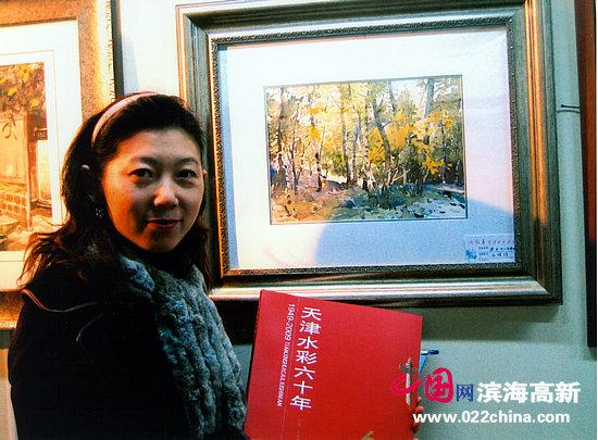 2009年12月,岩彩画家范展毓在天津参观“天津水彩六十年”大型画展。