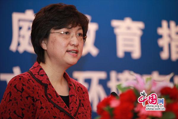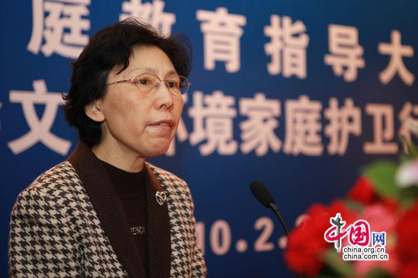 全国妇联儿童工作部部长邓丽介绍全国家庭教育指导大纲(摄影 姜一平)