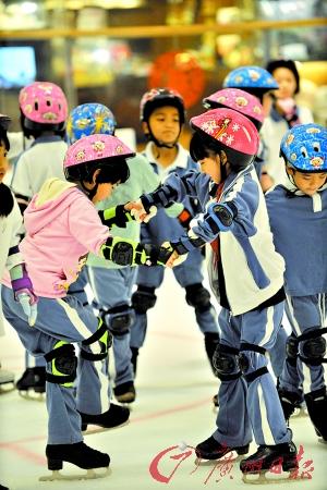 在现场陪练的家长告诉记者,上学期11月该班全体学生正式开始参加滑冰课,经过9节课的学习,发现孩子的协调能力和平衡能力变好了。带队老师程主任还告诉记者,在全校30人接面接力比赛中,一年七班的孩子轻松夺魁,“正是因为这个班是滑冰课试点班,上了两个月滑冰课后整班孩子的身体协调性、平衡能力和灵活程度平均要高出其他班很多。”