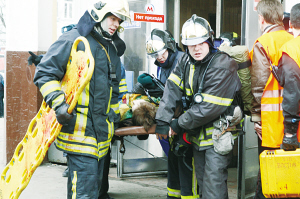网上公布的地铁站内的监控录像显示,在卢比扬卡地铁站内,地面上和墙角处都有尸体,急救人员正俯身抢救一些伤者。
