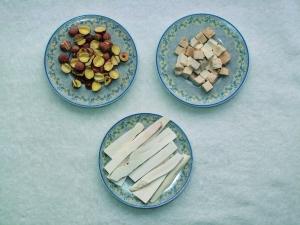 2. 莲子、云苓和淮山等中药材洗净备用;