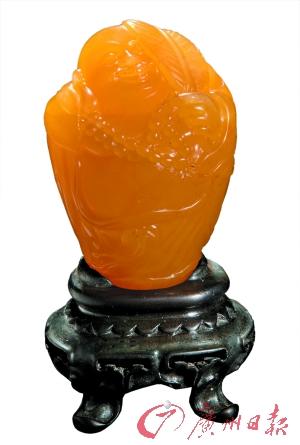 “寿山田黄一定有萝卜丝,而有萝卜丝的却不一定就是寿山田黄”,今天在广东省工艺美术珍品馆开幕的“一百枚田黄精品展”上,中国工艺美术学会副会长、寿山石专业委员会副主任黄宝庆为市民免费上课,教授如何辨别真假和优劣田黄。
