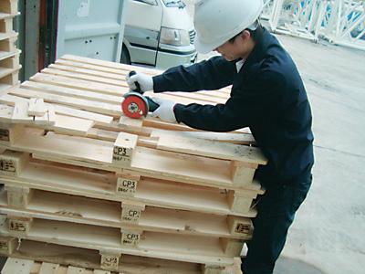③ 大榭检验检疫局工作人员对出口商品的木质包装进行取样