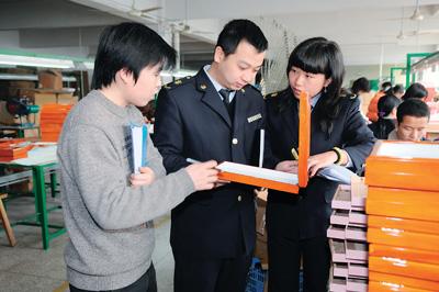 ④ 义乌检验检疫局工作人员在木制工艺包装礼品企业现场指导
