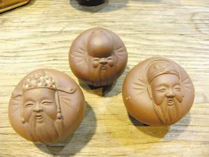 经过一番现场演示之后,丁文介绍说,不少茶宠都是做成中空结构,而且只有进口,没有出口。进口极小,平时将茶宠泡在水里,水就会慢慢流进茶宠的“肚子”里,遇到热茶,里面的空气热胀冷缩,水就从进口喷出。丁文说,从传统吉祥文化看,茶宠的这种特殊结构还有“财源广进,滴水不漏”的讲究。茶宠有许多体现吉祥寓意的造型,像目前市场上比较常见的“金蟾”茶宠,这蟾蜍并非普通蟾蜍,只有三只脚。传说它原本是一只妖精,后被仙人收服,改邪归正后四处吐钱帮助贫穷之人,所以后来被当作旺财瑞兽。做工精美的金蟾,嘴巴衔着的铜钱是可以转动的,谐音就是“赚钱”。