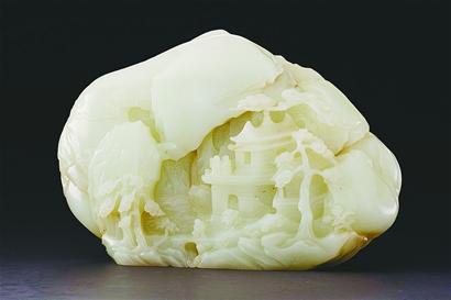 图三:清乾隆白玉雕楼台赏月山子