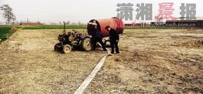 河北省邢台市柏乡县寨里西,送水人杨玉水正在给水车接水管,送水到灌溉处。没有机井的土地需要人工送水