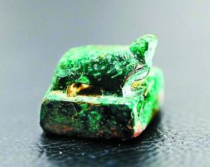这方“驸马都尉”印通身绿锈,印台上铸着一只小龟。