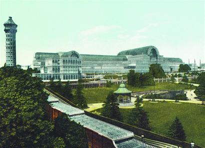 1850年9月26日,伦敦万国工业博览会展馆在伦敦市中心的海德公园开工兴建。设计师为英国园艺师帕克斯顿。6个月后,这座采用玻璃和铸铁预制构件的主展馆如期竣工并引起了轰动。29万多块平板玻璃覆盖在总长564米、宽124米的建筑上,壮丽辉煌,晶莹剔透。