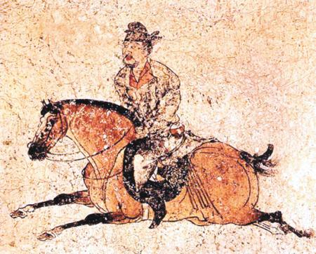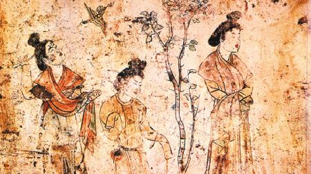 章怀太子墓著名的《观鸟捕蝉图》(局部)。