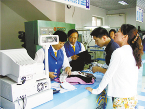 记者走访了京城多家洗衣店,包括连锁加盟的品牌洗衣店和普通自创品牌洗衣店,发现店内衣架上挂满了洗好的换季冬装,生意十分红火。前来光顾的顾客往往送来两三件衣服,同时领走多件洗好的衣服。记者发现,多数洗衣店给顾客开单时,很少说明清洗衣服的方式,有些商家仅凭经验区分衣服的清洗方式。在少数大型的连锁品牌洗衣店,工作人员往往会看一下送洗衣服内的洗衣标志,向消费者说明洗衣方式,呢子面料需干洗,羽绒服可湿洗。
